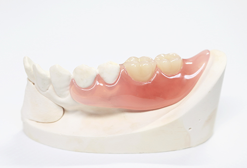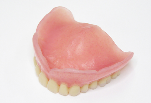 歯ぐきに密着させる「床」部分が、歯科用プラスチックの「レジン」で作られた入れ歯です。
